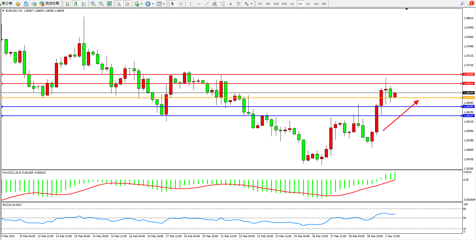 交易策略:1.06554上方看涨,目标1.06814、1.06980