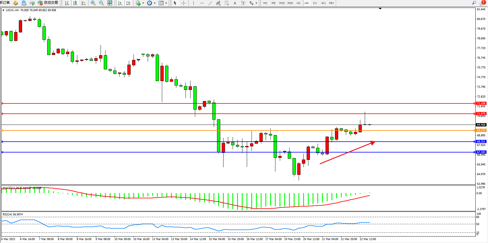 原油USOil——4小时K线图显示: