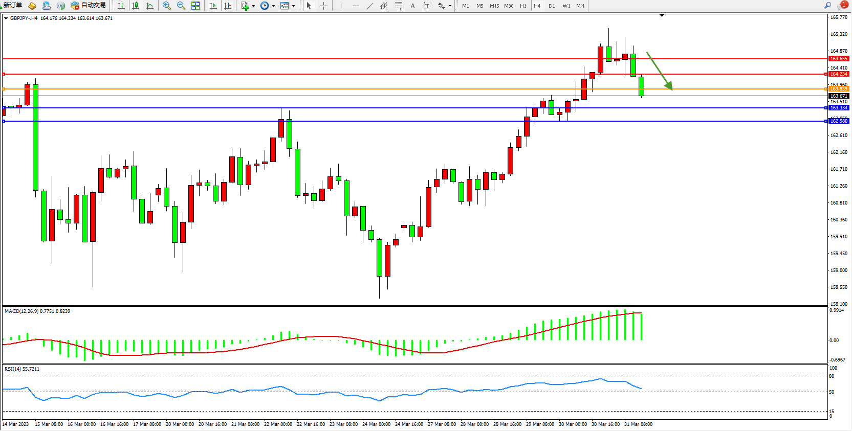 阻力位:164.234 164.655