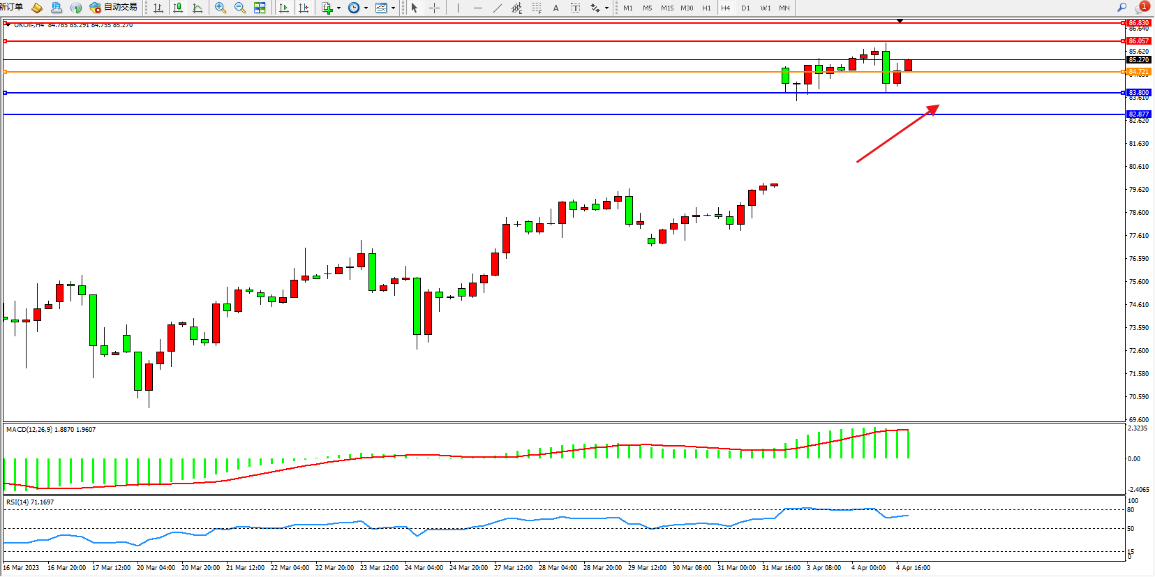 布油UKOil——4小时K线图显示:
