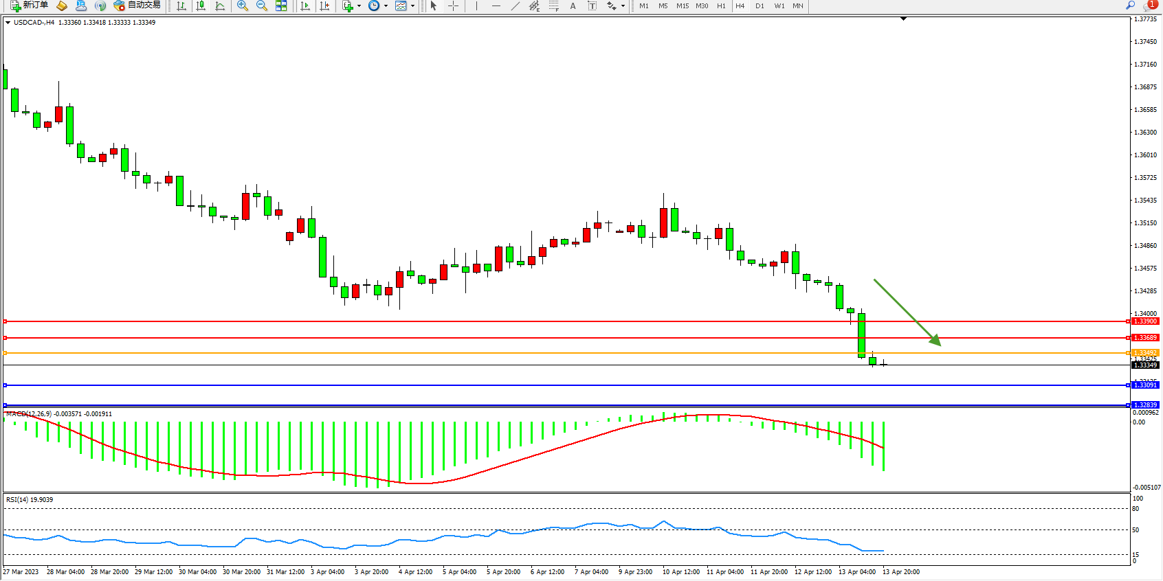 美元加元USDCAD——4小时K线图显示: