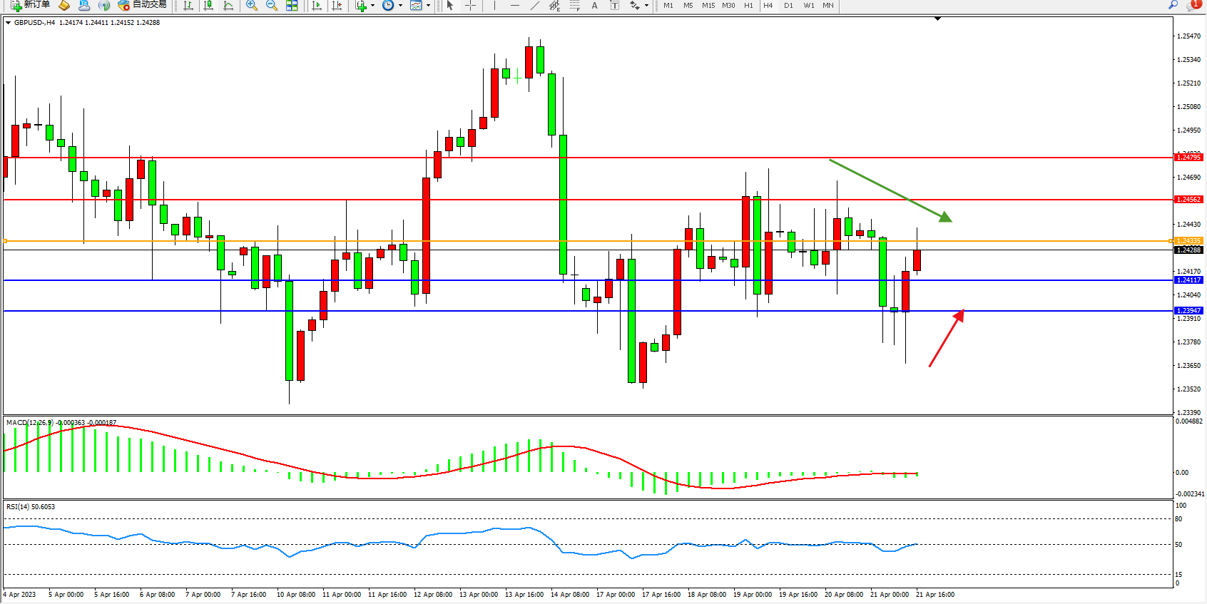 备选策略:1.24335上方看涨,目标1.24562  1.24795