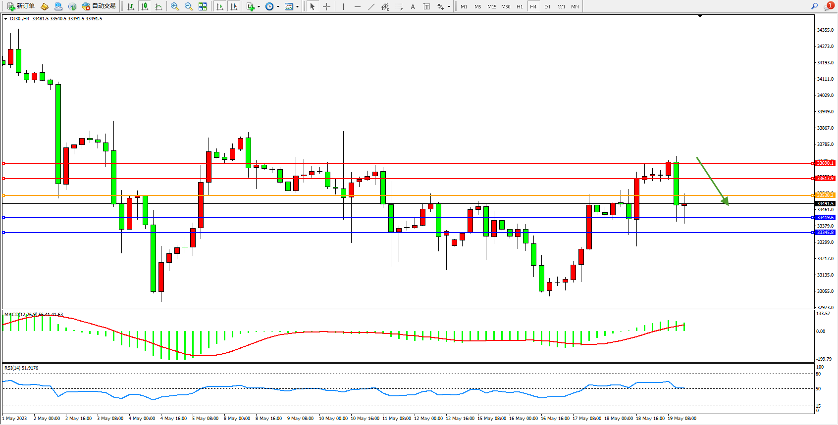 交易策略:33530下方看跌,目标33419 33345