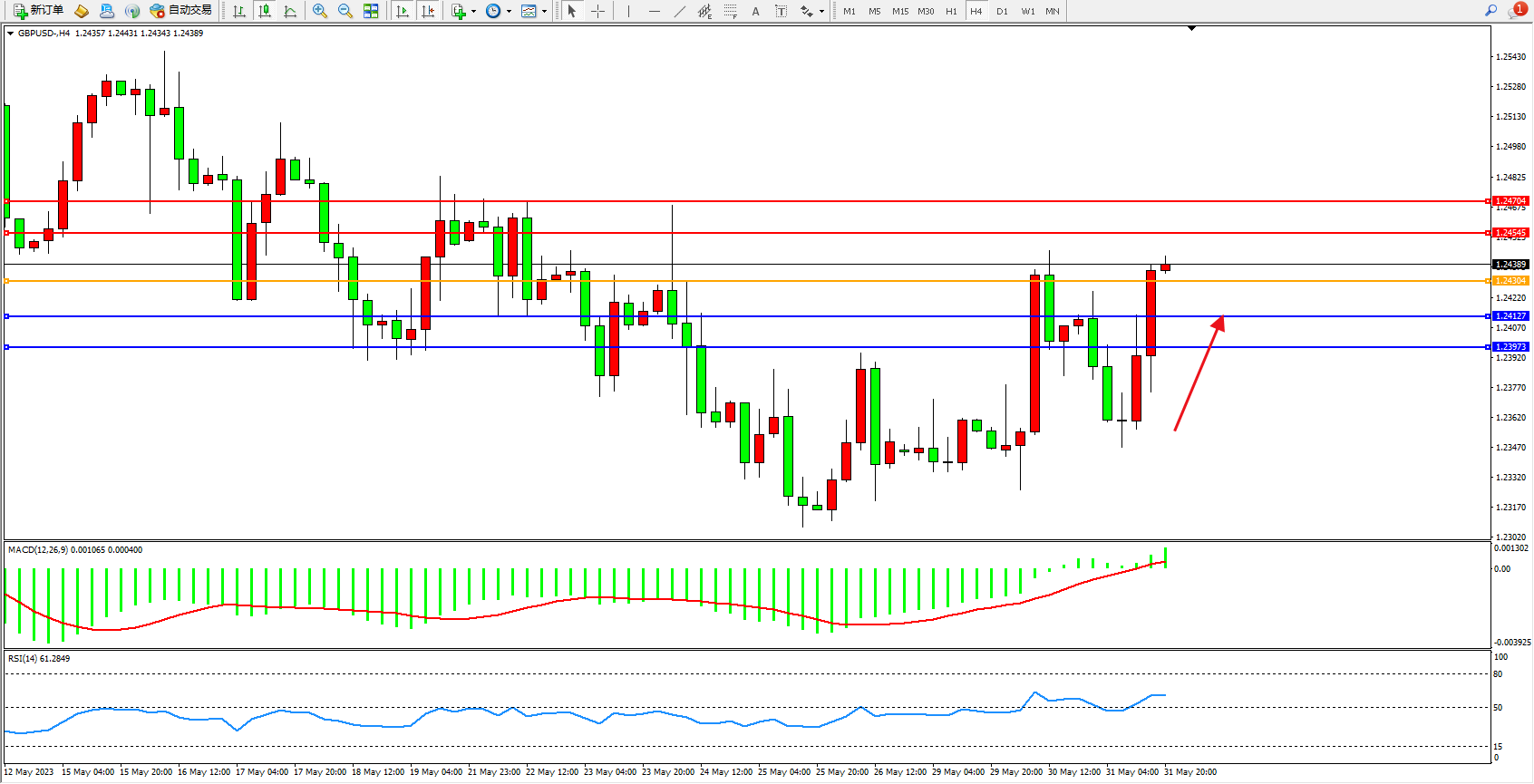 交易策略:1.24304上方看涨,目标1.24545  1.24704