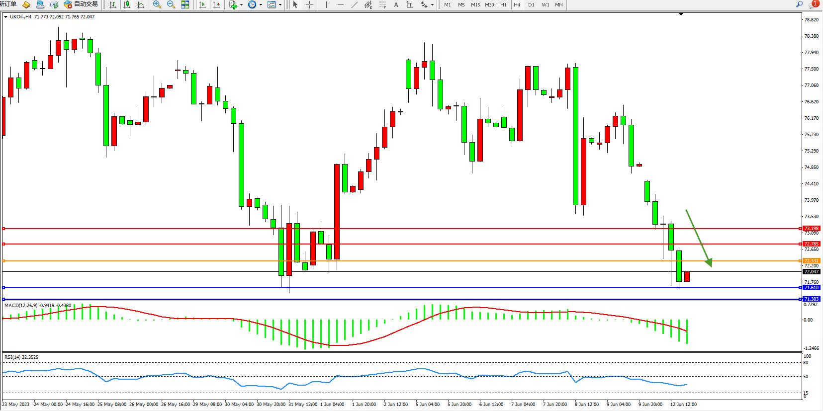 交易策略:72.331下方看跌,目标71.610 71.303