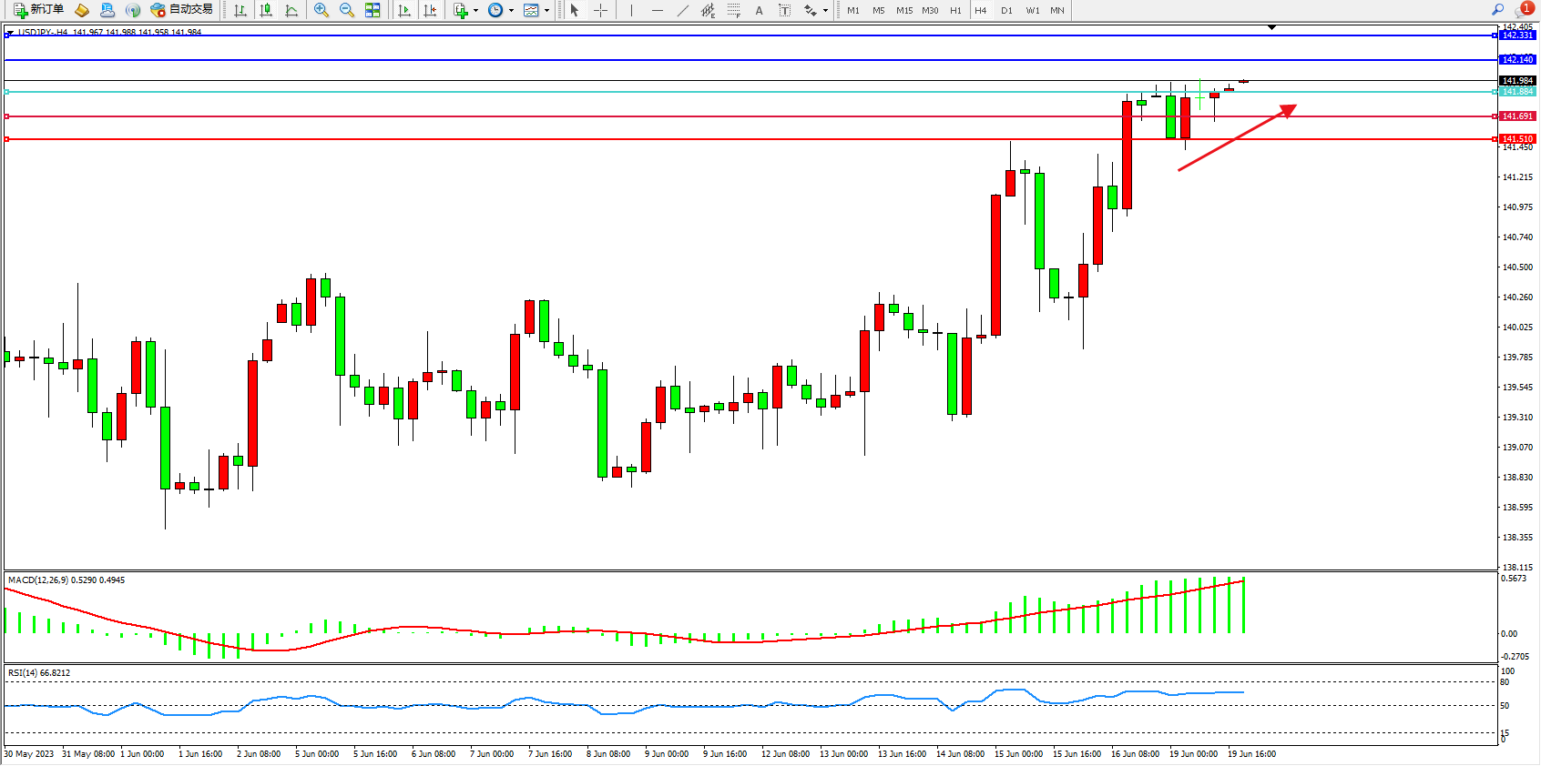 阻力位:142.140 142.331