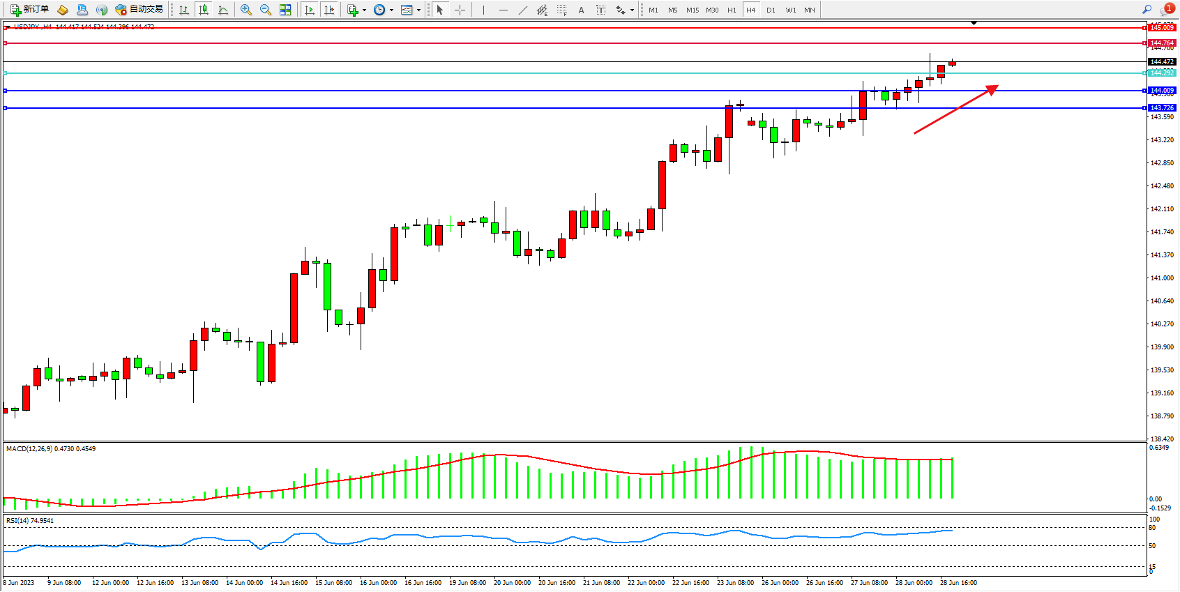 阻力位:144.764 145.009