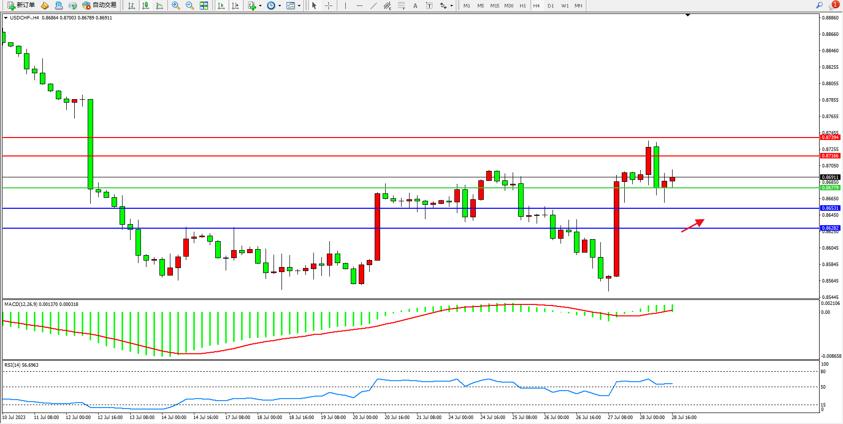 交易策略:0.86779上方看涨,目标0.87166 0.87394