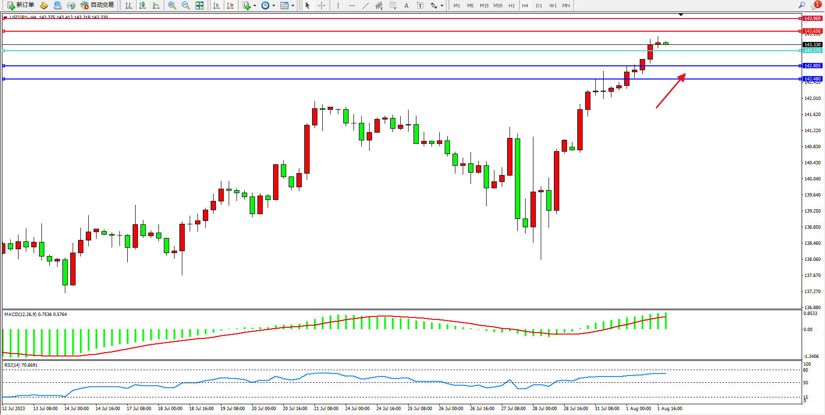 阻力位:143.658  143.960