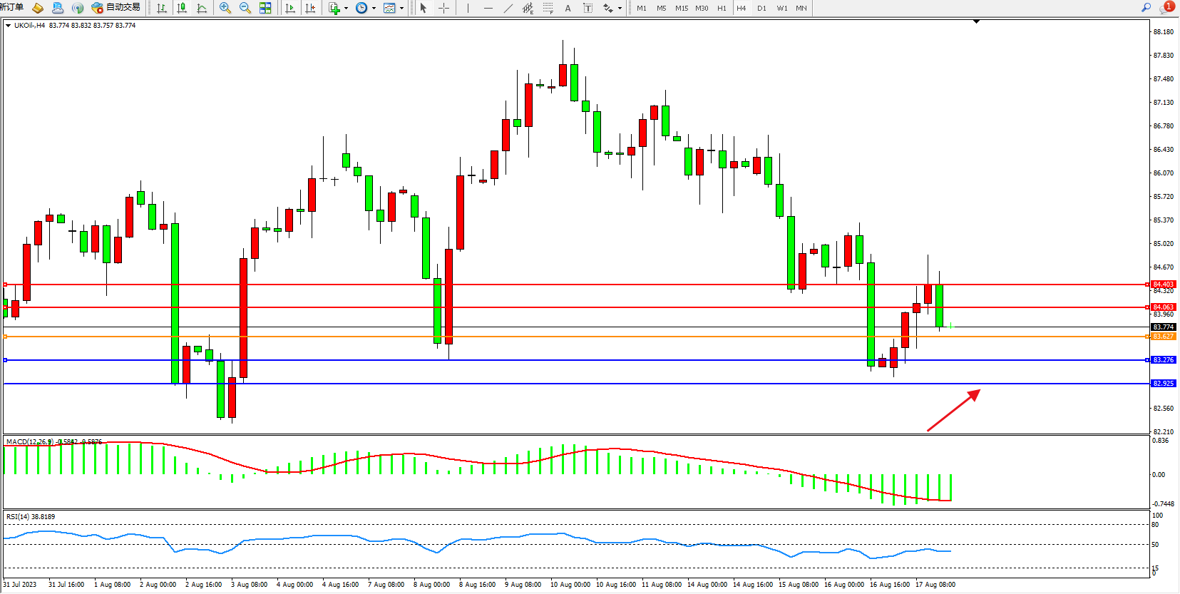 布油UKOil——4小时K线图显示: