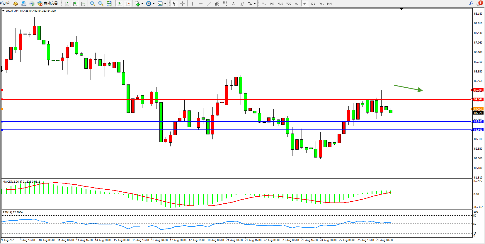 布油UKOil——4小时K线图显示: