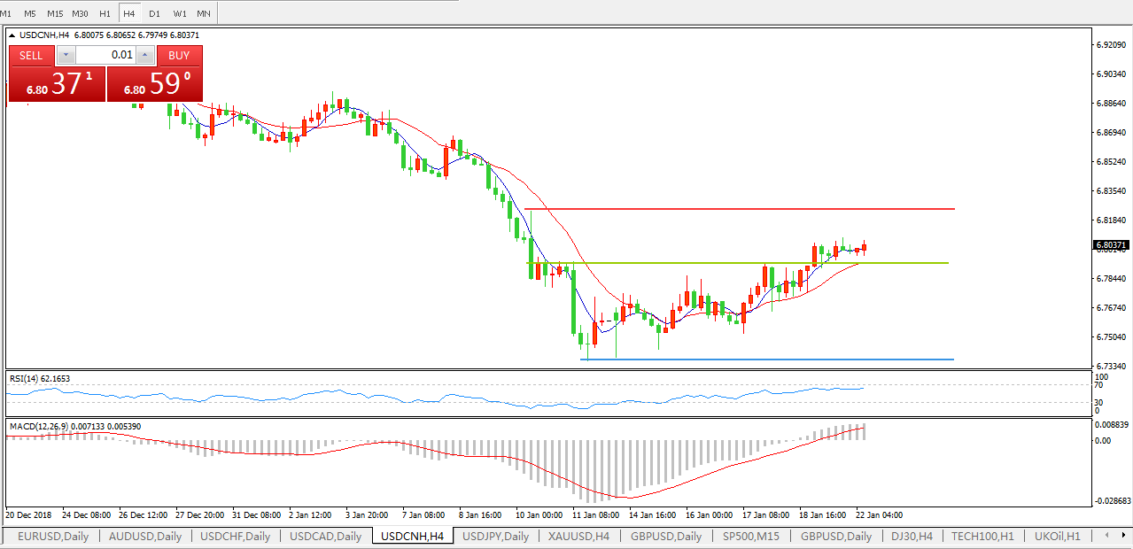 美元兑人民币USDCNH  4小时图: