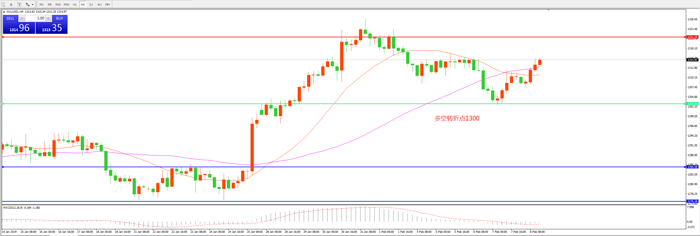 多空转折点:1300.00