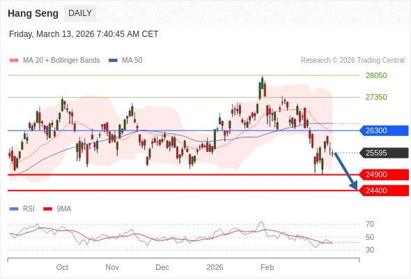 恒生指数 短线: 短期关键阻力位在26300。