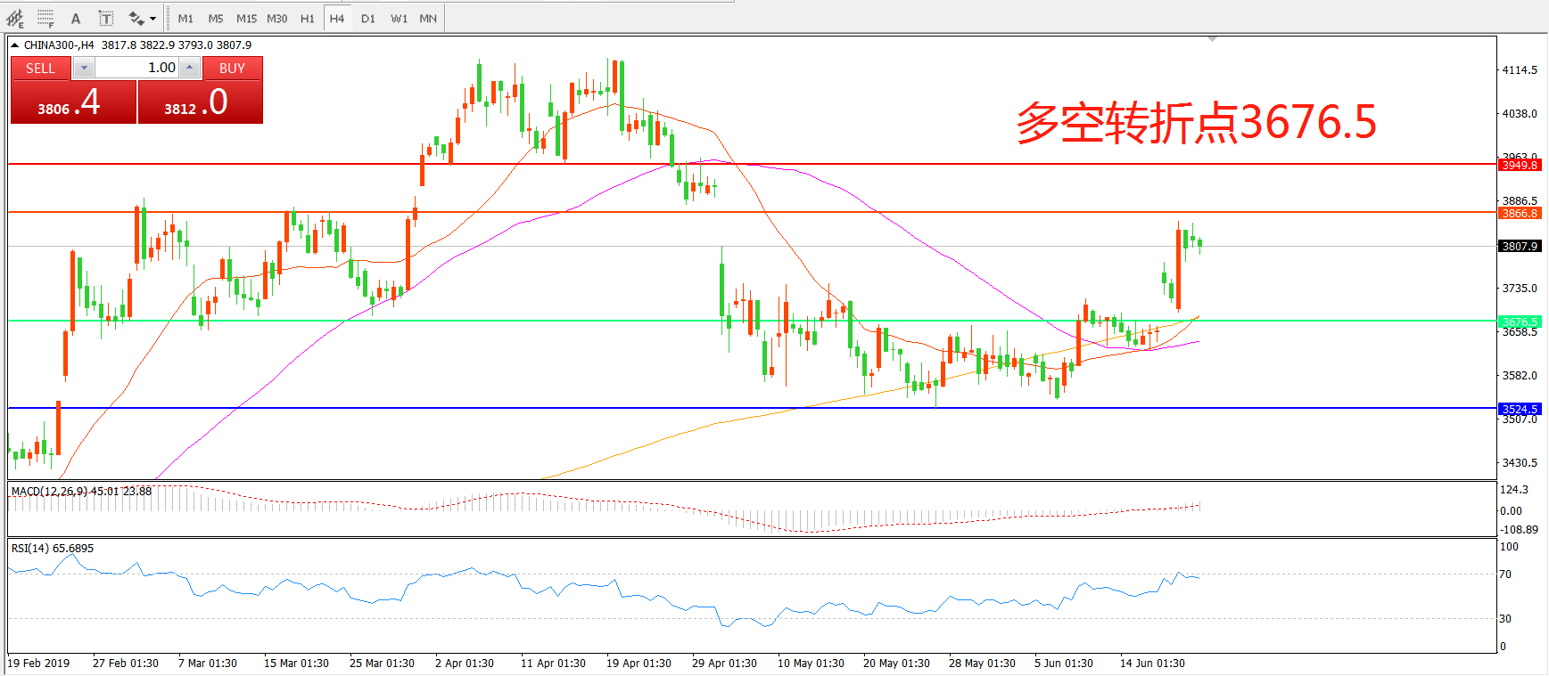 多空转折点:3676.50