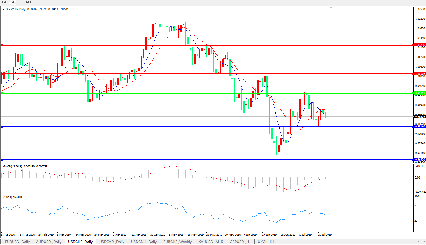 支撑位:0.9800、0.9700
