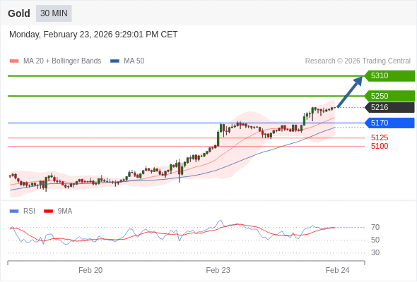 在 5170 之上,看涨,目标价位为 5250 ,然后为 5310 。