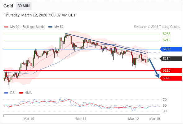 在 5185 之下,看跌,目标价位为 5115 ,然后为 5090 。