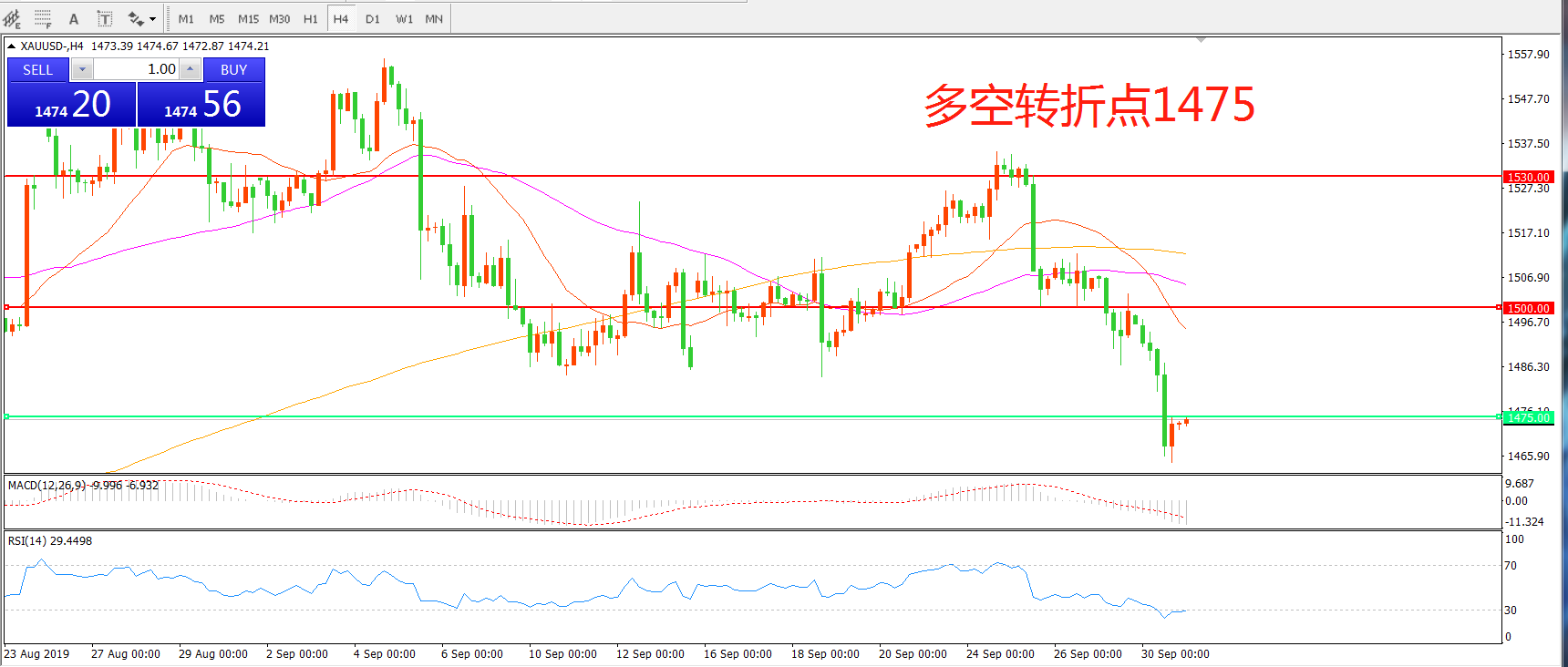 多空转折点:1475.00