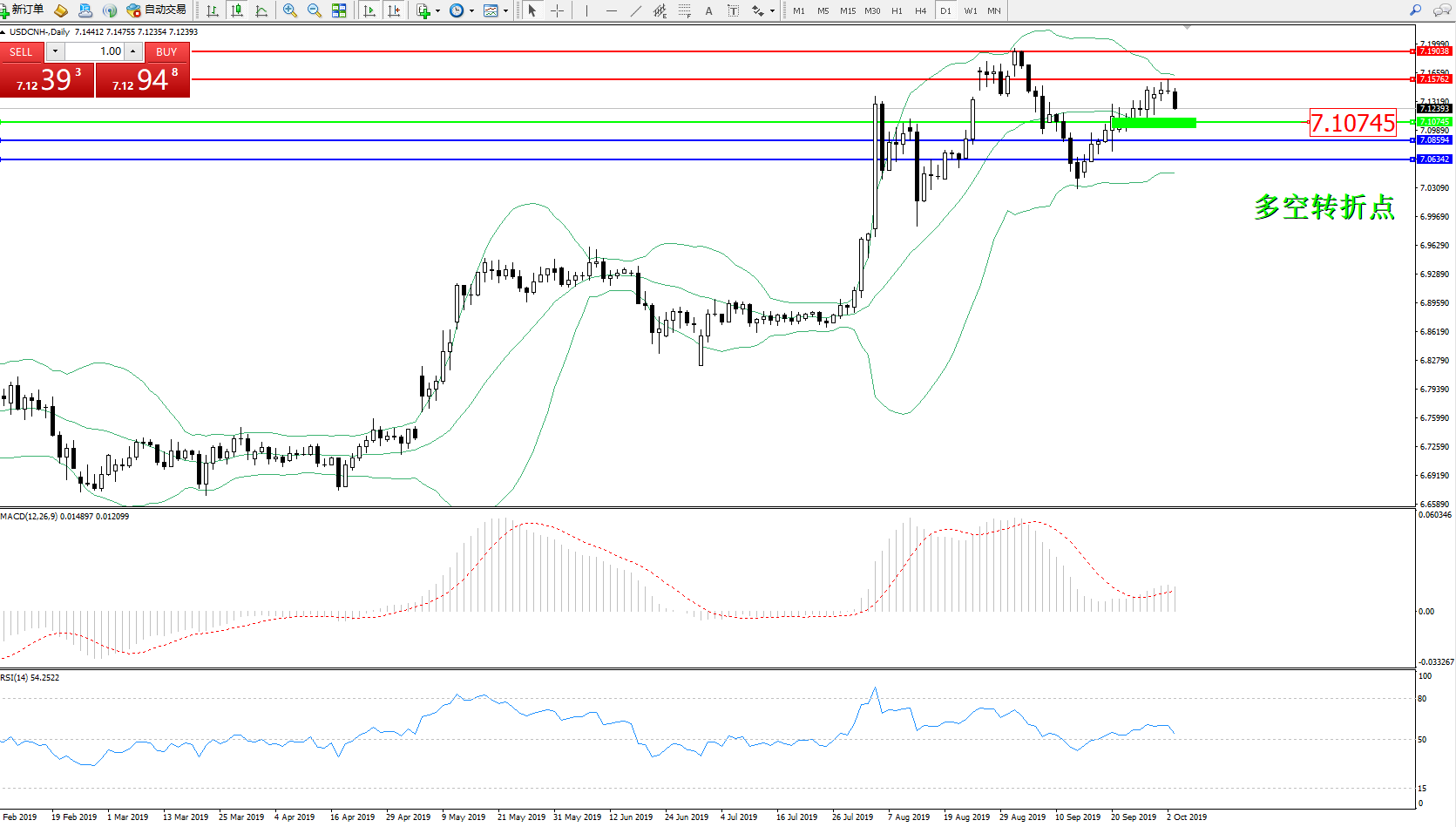 交易策略:7.10745上方看涨,目标7.15762、7.19038