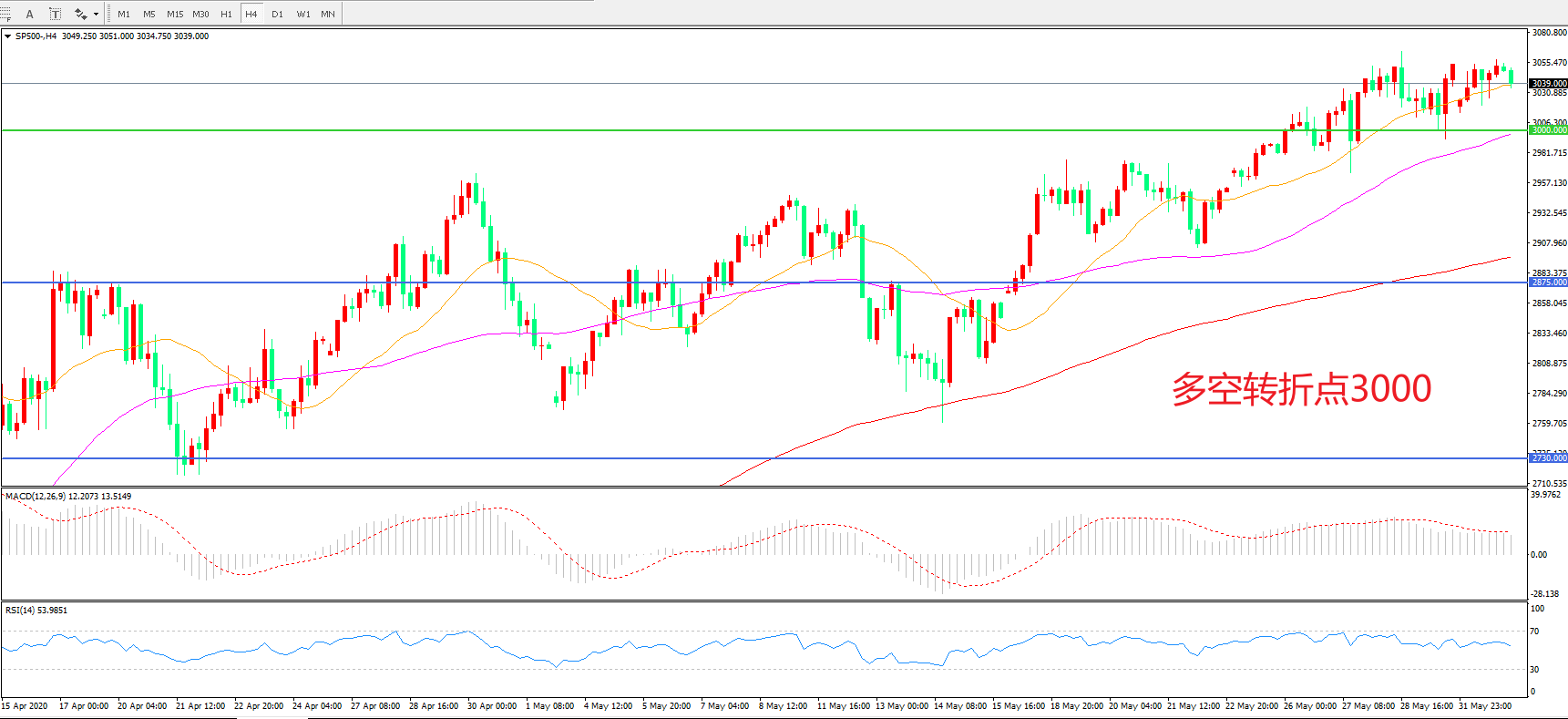 多空转折点:3000.00