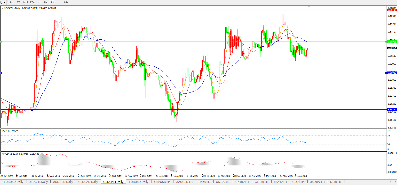交易策略: 在7.1000之下,看跌,目标价位为7.0000,然后为6.8820。