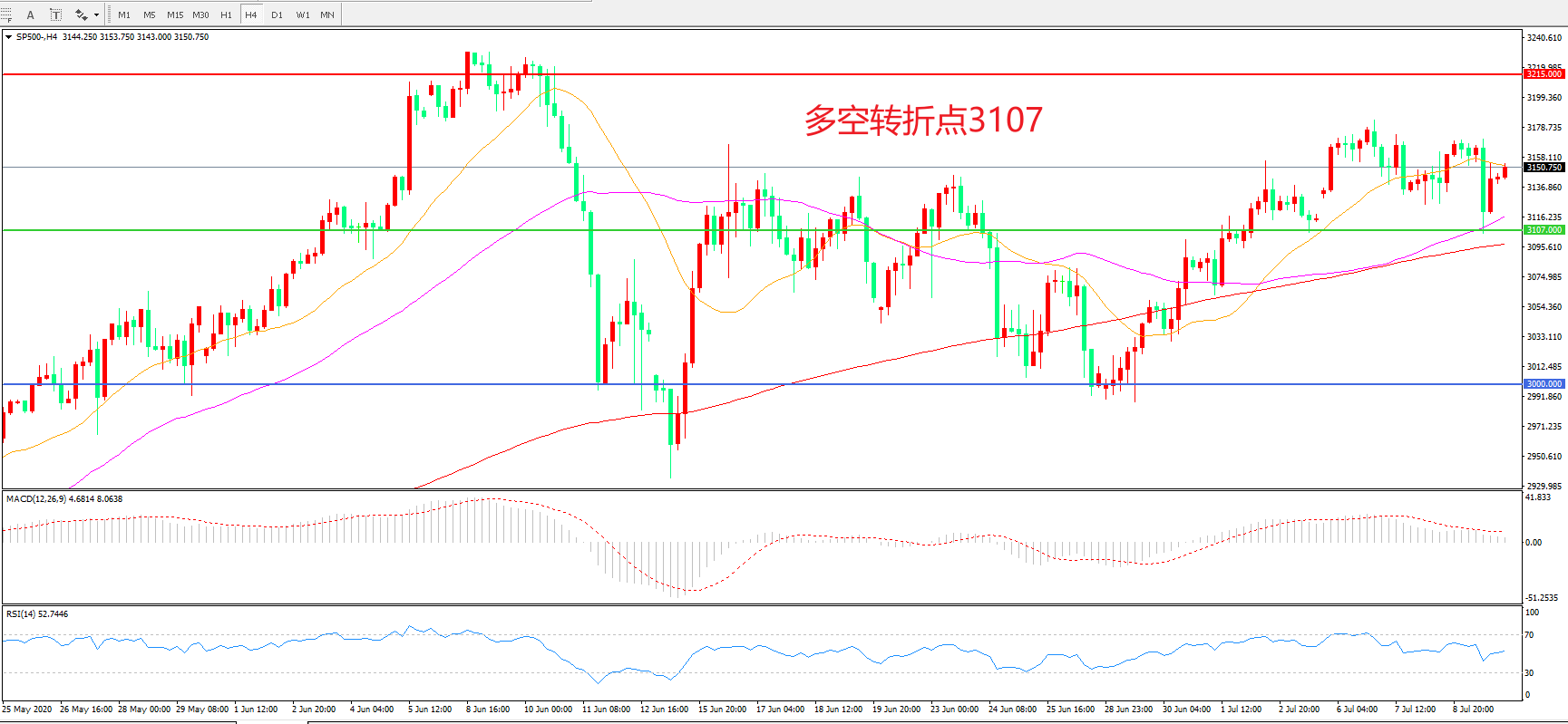 多空转折点:3107.00