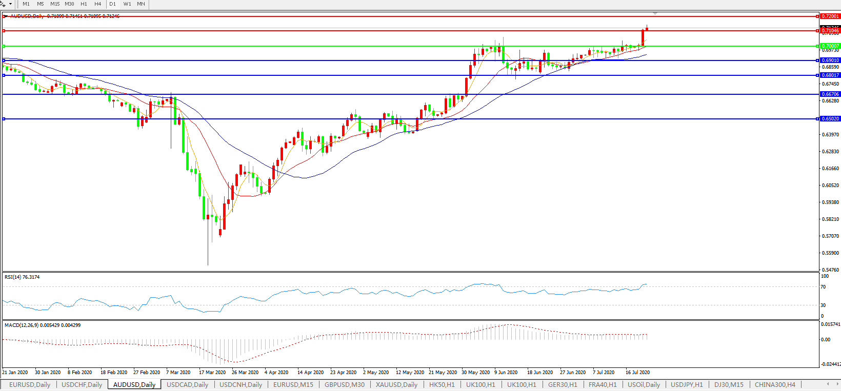 澳元兑美元AUDUSD 日线图: