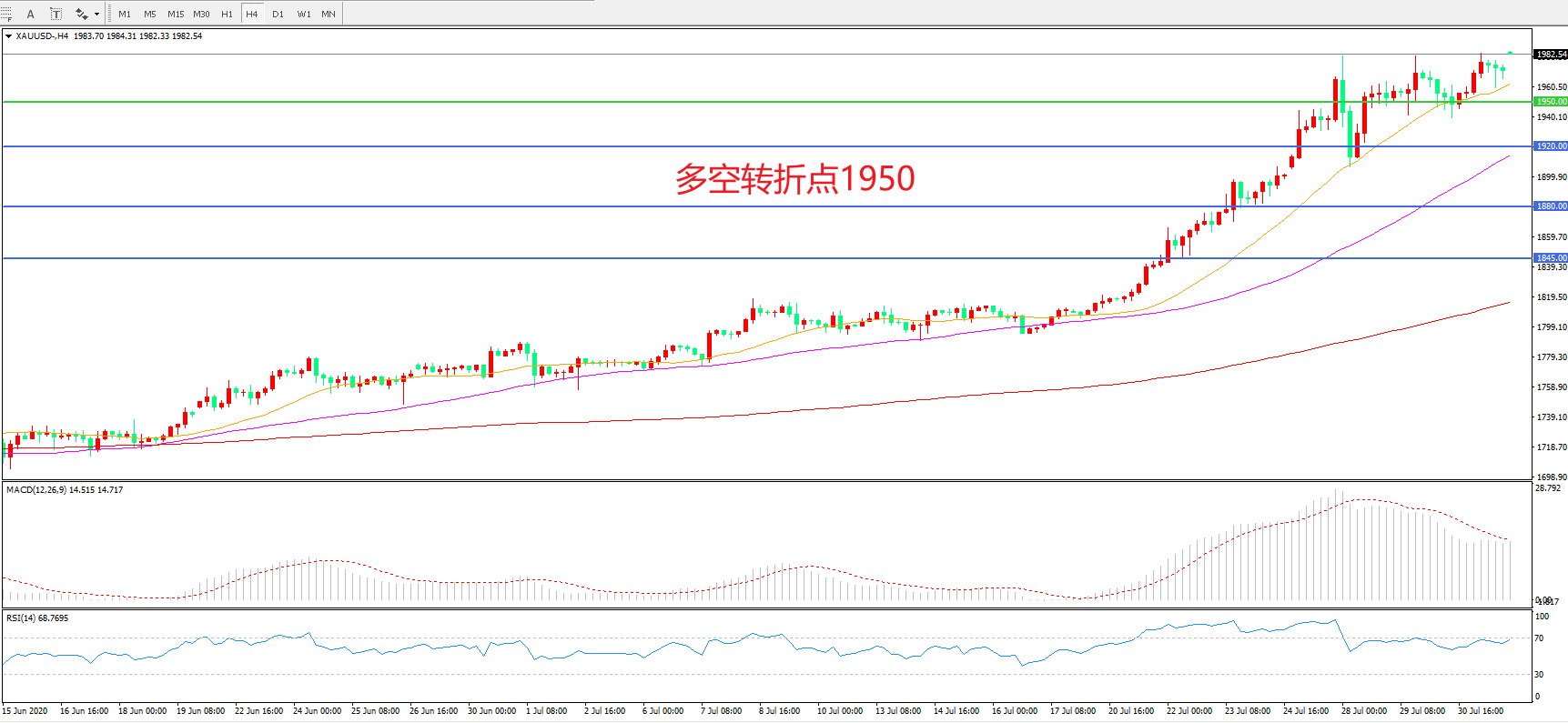 多空转折点:1950.00