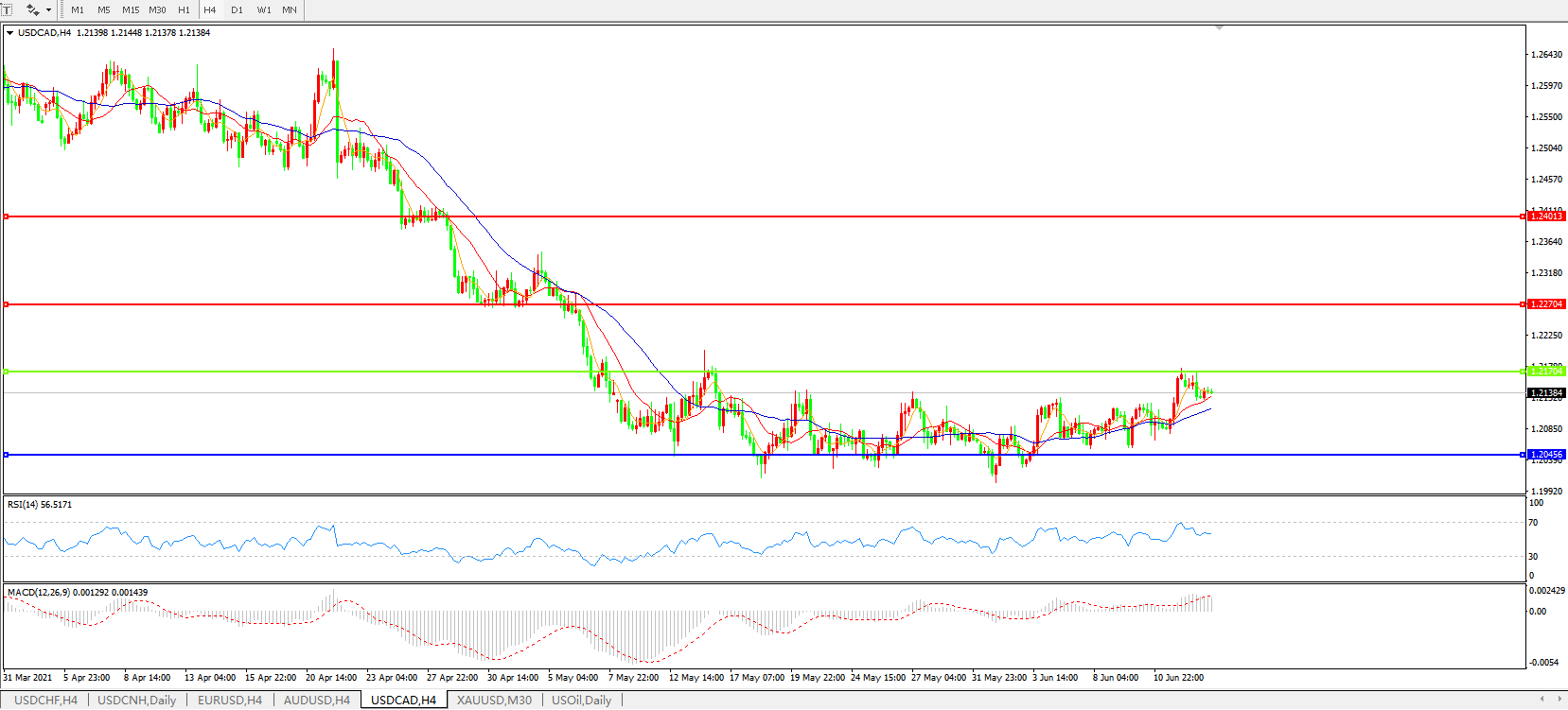 美元兑加元USDCAD 4小时图: