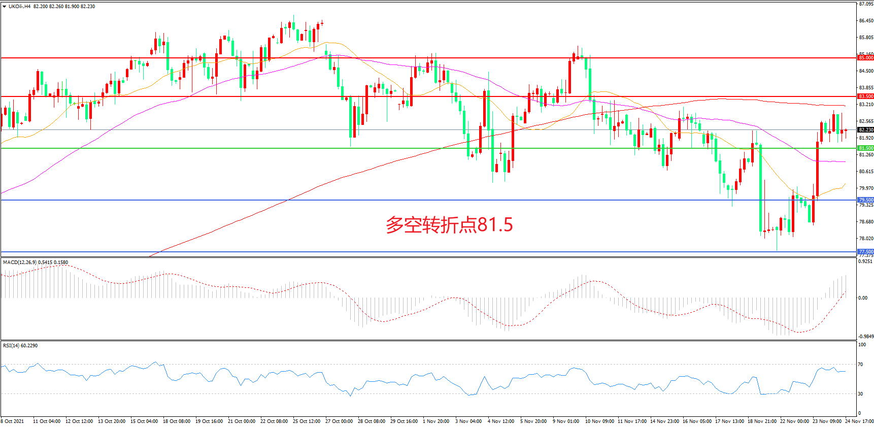 交易策略:在81.50之上看涨,目标83.50                 85.00