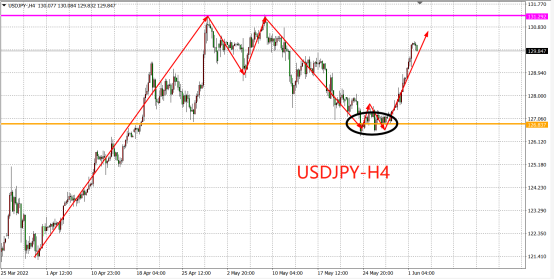 昨日美国ISM制造业指数意外录得上行之后,美元/日元上涨再度刷新周度高点130.19,自本周开始以来,美日汇价累计涨近2.5%,涨势上正在跟随美国10年期国债收益率的升势。这是由于相比日元和国债,美元更具备确定性,所以投资者大都选择抛售美国债券和日元等资产,从而去持有美元。