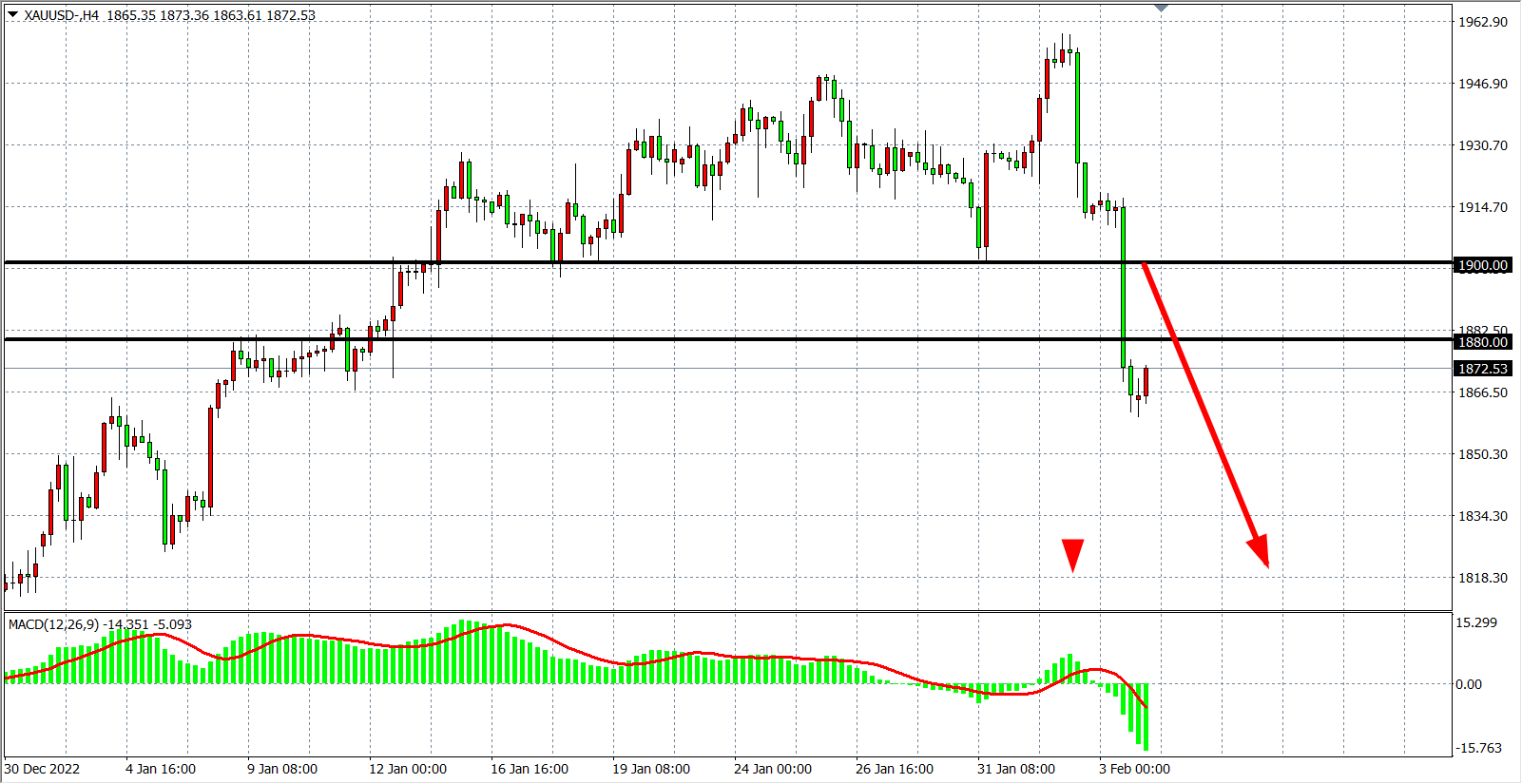 交易策略:在1900.00 之下看跌,目标1860.00 1840.00