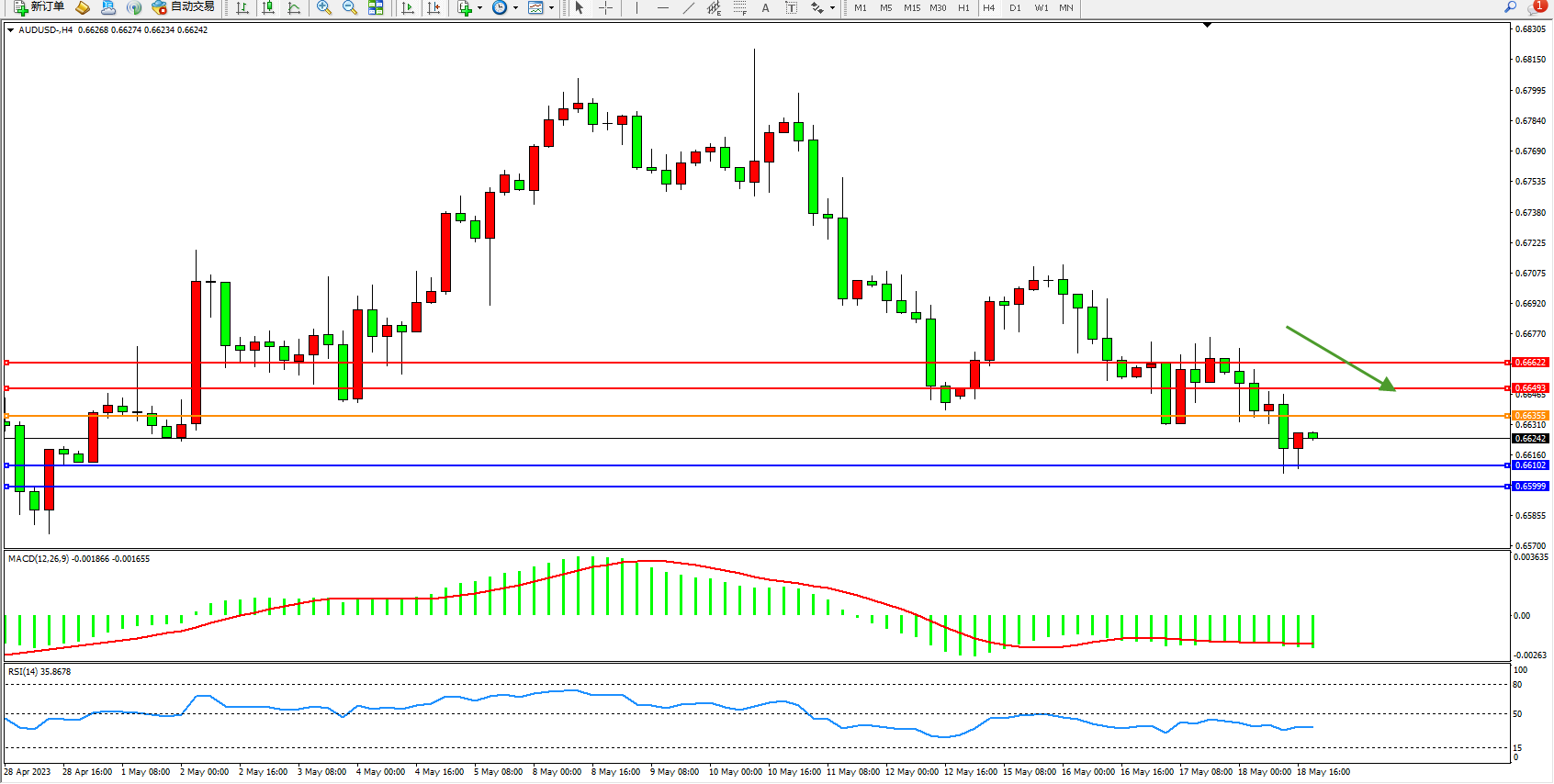 交易策略:0.66355下方看跌,目标0.66102  0.65999