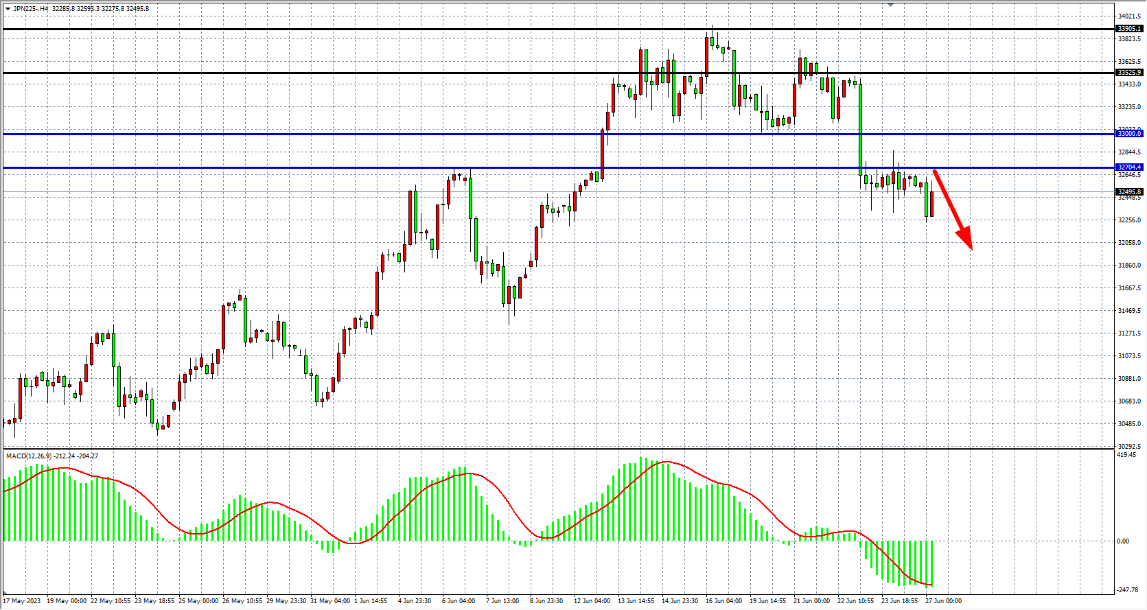 日经:32700之下看跌