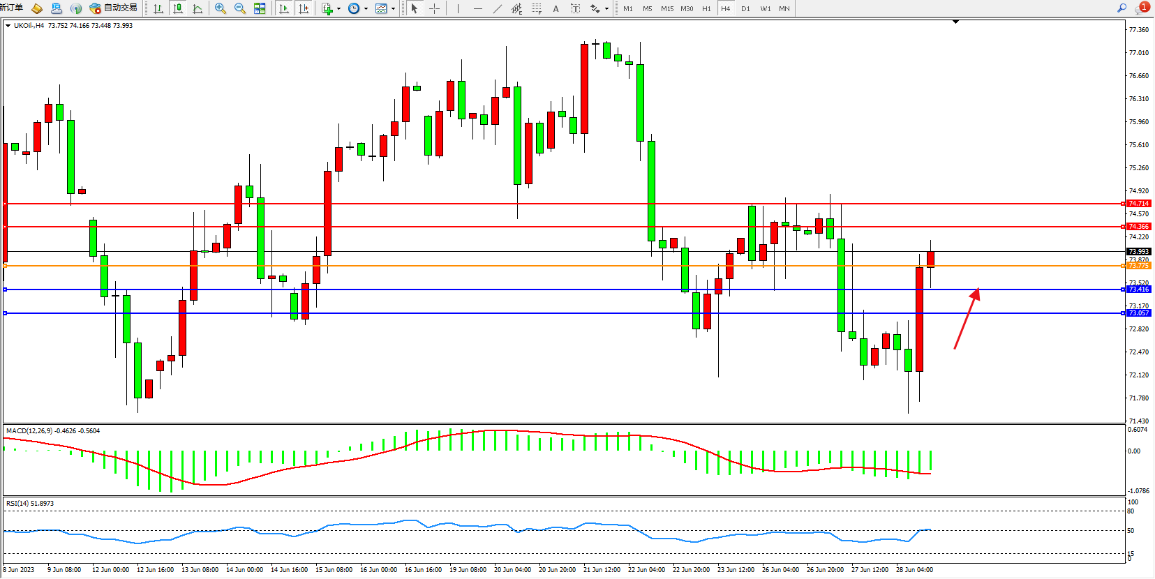 布油UKOil——4小时K线图显示: