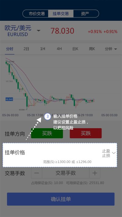 3.输入挂单价格,建议设置止盈止损,以把控风险